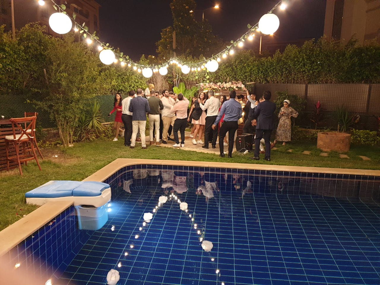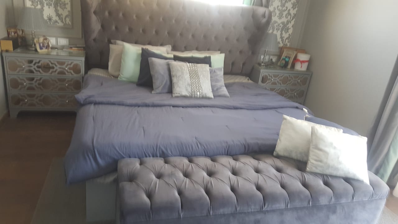 فيلا مفروشه للايجار بحمام سباحه الرحاب 2 للايجار الفندقي ناصيه stand alone مساحه الارض 650 متر مساحه المبنى 320 الدور الأرضي ريسبشن ٤ قطع وopen kitchen وحمام ضيوف وغرفه مع حمام ( مفروشه مكتب ) مع تكيف مركزى الدور الاول 3 غرف نوم كلهم ماستر ( الغرفه الرئيسيه حمام مع دريسنج وجاكوزى ) مع تراس الغرفتين دورين دور علوى للنوم ودور اسفل ليفنج مع حمام ودريسنج) وغرفه ليفنج مع small kitchenette الدور التانى غرفه مع حمام وروف مفتوح تتطل علي ميدان كبير قريب من جميع الخدمات ومول افينو الجزء الخارجى فرن بيتزا وتجهيزات لمطبخ خارجى وحمام سباحه بسخان غاز ( heated) مع جاكوزي وحديقه فيها شجر فاكهه (تفاح خوخ مانجو .........) نافورتين عند المدخل وتربيزة بينج بونج و fire pit الفيلا مجهزة بفلتر يغذى الفيلا كلها وسخان مركزى الفيلا مزوده بكاميرات للمراقبه